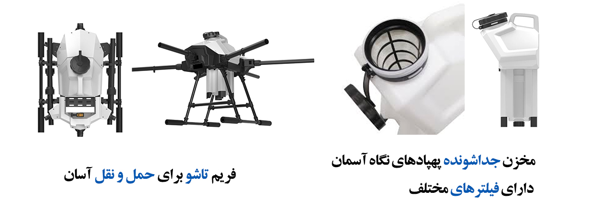 وزن سبک، حمل آسان، پاشش یکنواخت با نازل‌های نسل جدید و امکان کنترل کاملاً هوشمند از طریق اپلیکیشن، باعث می‌شود این پرنده کوچک و قدرتمند به یک یار همیشگی کشاورز در عملیات محلول‌پاشی تبدیل شود.