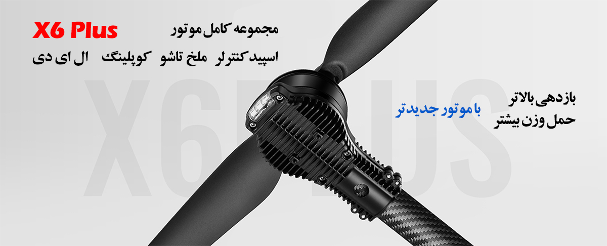 موتور: براشلس سری X6 Plus همراه با ملخ‌های تاشونده سایز ۲۴۸۰ (۶ عدد)